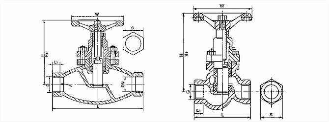 阀体长度 | 接头长度 | 接头长度 | 手轮直径 | 管螺纹 G | 关闭高度 | 开启高度 | 重量 | |